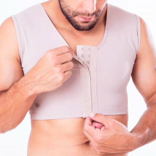 O corpete masculino com abertura frontal para pós-ginecomastia foi desenvolvido com tecido tecnológico em Microfibra, composto por cristais bioativos que absorvem o calor do corpo, devolvendo esta energia sob a forma de raios infravermelho longo que atravessam a pele estimulando o metabolismo celular.